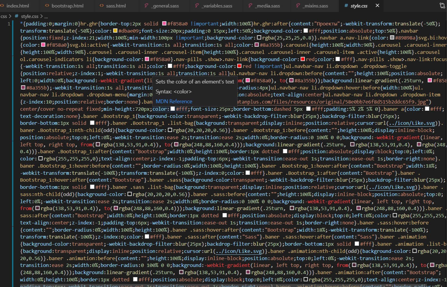 Написание CSS само по себе весело, но когда таблица стилей становится огромной, то становится и сложно её обслуживать. И вот в таком случае нам поможет препроцессор. Sass позволяет использовать функции недоступные в самом CSS, например, переменные, влож енности, миксины, наследование и другие приятные вещи, возвращающие удобство написания CSS.Как только Вы начинаете пользоваться Sass, препроцессор обрабатывает ваш Sass-файл и сохраняет его как про стой CSS-файл, который Вы сможете использовать на любом сайте.